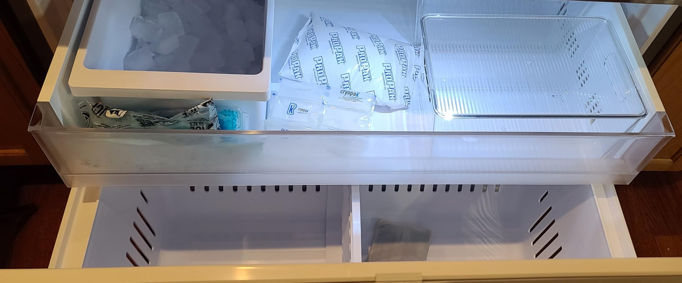 Love these. No more tiny packets of condiments stuffed in the vegi drawers. No more single wrapped leftovers to float to the back where they are never to be seen again. No more loose popsicles or ice cream left to stick up the drawer. A separate container for baggied raw chicken to avoid cross-contamination. These are perfect little drawers that organizes my refrigerator so well. While the tops don't seal, they don't easily slip-off making them very stackable for cupboard shelfs. Now to clean and organize the pantry,Sturdy plastic, very clear and able to be labeled. Photos are how they fit in a counter depth French door refrigerator. Two can also sit side by side on one shelf ( not pictured). Freezer is the drawer type with a small pull out top drawer which is shown in photo. I would recommend these containers for items already wrapped for freezing as they are not airtight and have oval cutouts on sides for finger grips.