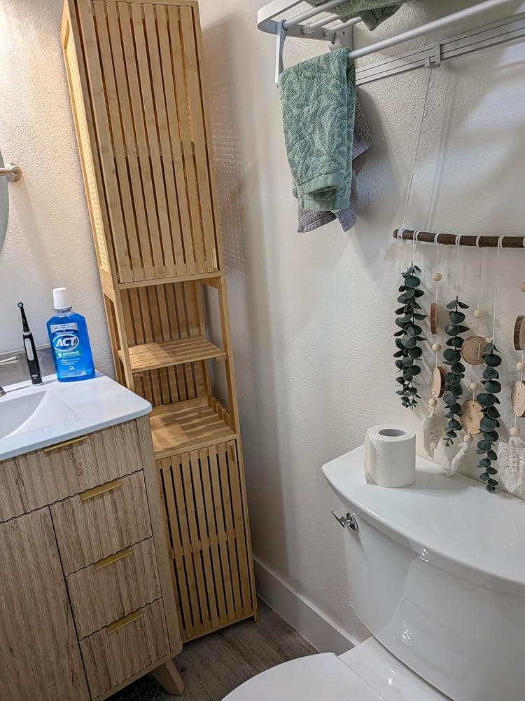 So far, so good. I love that it is bamboo rather than composite board, because it seems sturdier and there's no coating that's going to chip off due to bathroom moisture. The only thing is if you have a baseboard, the anchors are not long enough to reach the wall. We substituted a baby-proofing furniture anchor with a metal cable.