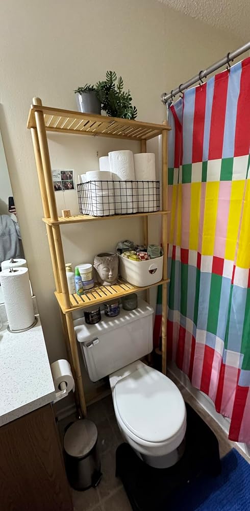 Over-the-Toilet Bamboo Storage Shelf – 3-Tier – Freestanding – Natural
