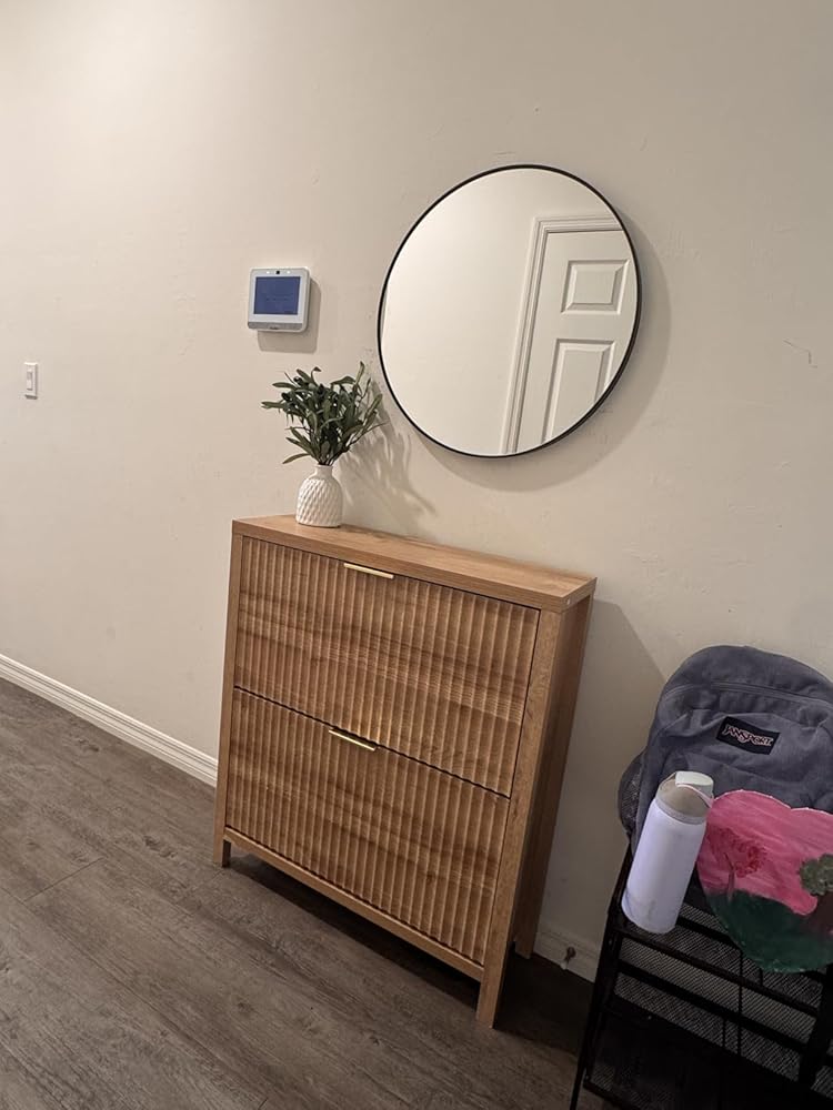 Fluted Shoe Cabinet - Solid Wood Flip Drawer